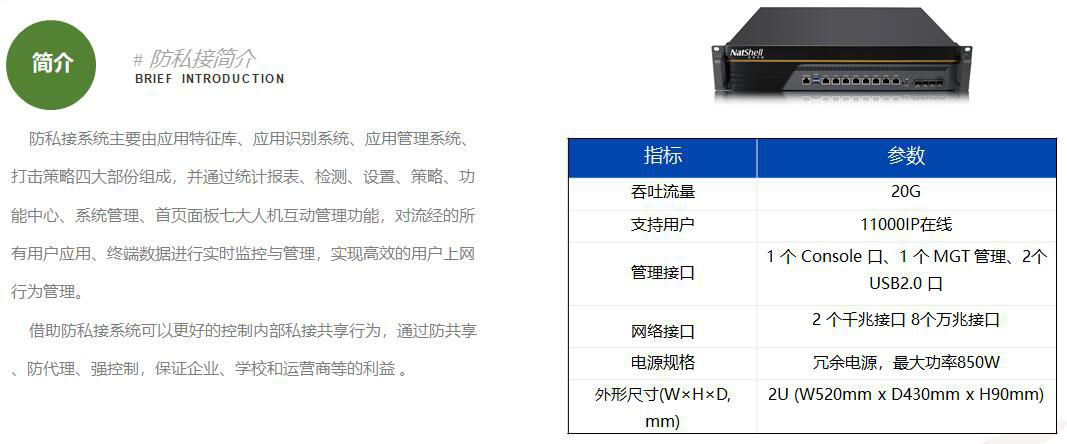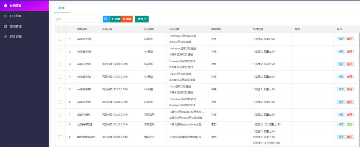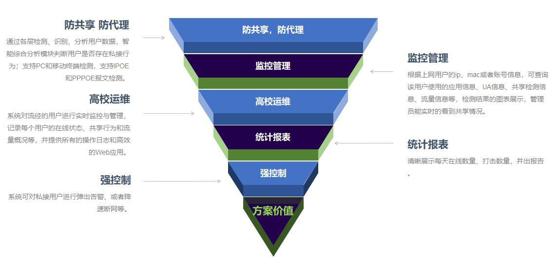 防私接系统具备灵活的检测机制,可对用户流量进行多种类型的检测方式和策略权重等精细剖析,判断其共享行为,应用识别率高,漏判、误判率低。