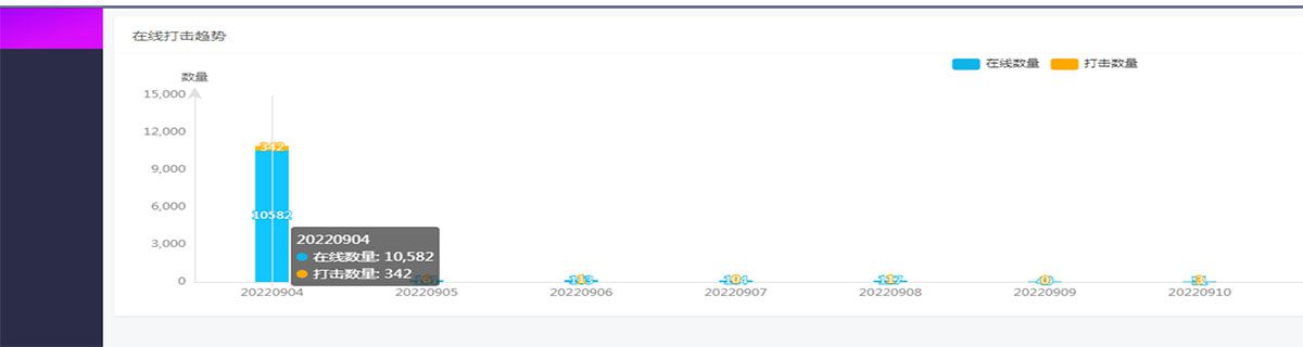 3.此图展示为当天打击总结:在线数量、打击数量趋势图 -