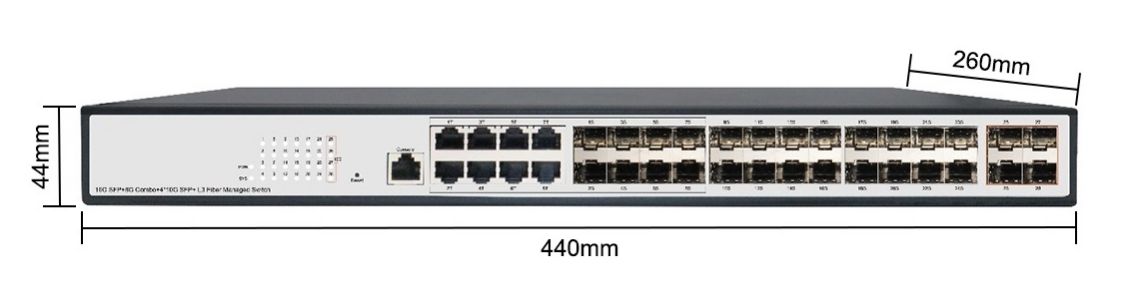 | 接口 | 16*1000Mbps 光纤模块扩展插槽 8*1000Mbps光电复用口 4*10Gbps SFP+光纤模块扩展插槽 1*Console 口 |