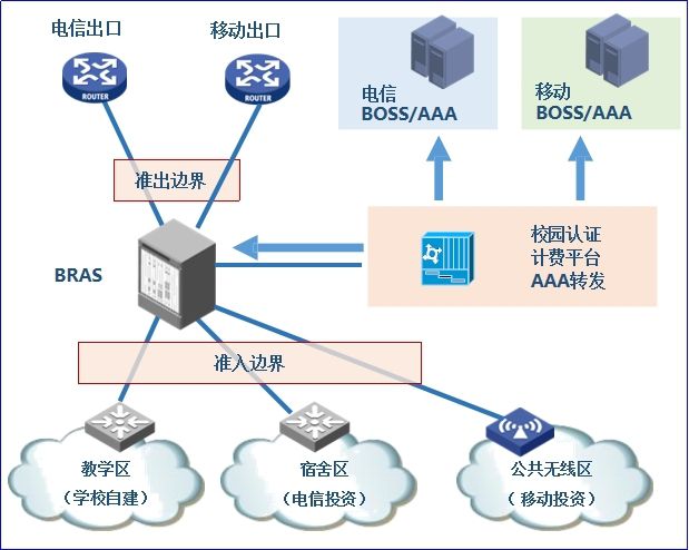 蓝海卓越推出了针对校园宽带的融合计费解决方案,电信运营商可以使用AAA转发的方式进行运营。