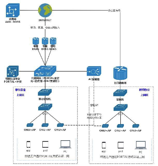 同时与运营商商帐号绑定,采用代理拨号认证方式上网。