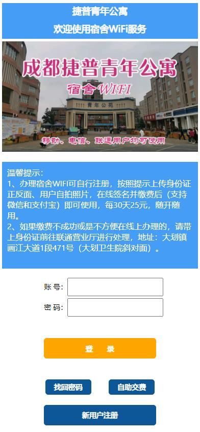 经过测试及选型,成都捷普厂区青年公寓最终采用蓝海卓越认证+计费平台+华为全光宿舍WIFI方案进行宿舍WIFI的自助开户、自助交费、自助续费,所有的交费均基于运营公司自己的支付宝和微信帐号收取。极大了节约了管理团队的现场管理和维护成本。同时提升了用户的上网体验。