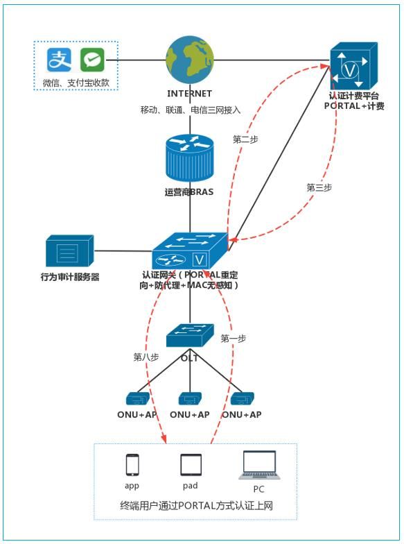 经过测试及选型,成都京东方成都宿舍区最终采用蓝海卓越无线AP+网关+认证计费平台方案进行宿舍WIFI的自助开户、自助交费、自助续费,所有的交费均基于运营公司自己的支付宝和微信帐号收取。极大了节约了管理团队的现场管理和维护成本。同时提升了用户的上网体验。