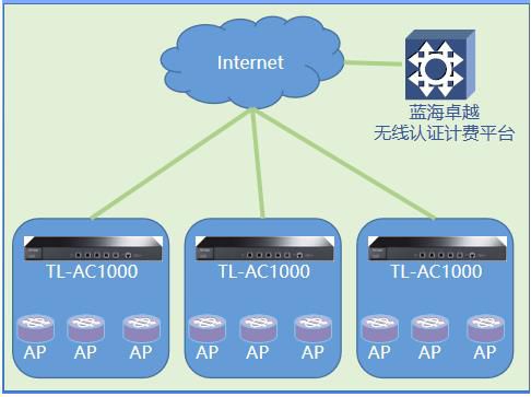 蓝海卓越计费平台放置于互联网,需要使用固定公网IP地址,一台计费可以对接多台TL-AC1000