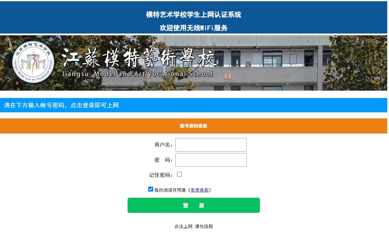 江苏模特艺术学校采用我司认证计费+代拨网关为学生提供上网服务