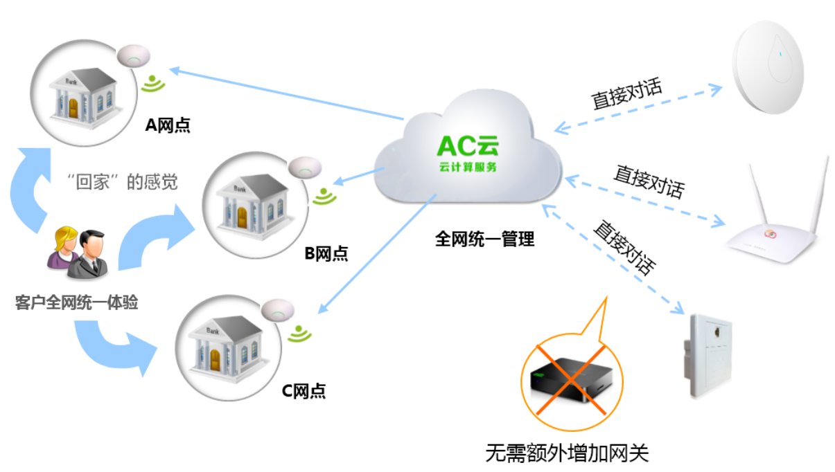 “无线云AC”不仅仅是一个概念,它是“蓝海卓越”在网络基础设施创新上的一个重要里程碑。“无线云AC”让企业能够实现对多个接入点(AP)的集中管理和优化配置。通过“无线云AC”,无论是在大型商业综合体还是校园环境中,管理者只需轻轻点击几下鼠标,就能调整数百个甚至数千个无线接入点的工作状态。这种级别的控制力和灵活性,正是“无线云AC”带给用户的独特魅力所在。它简化了网络管理,提高了效率,并确保了最佳的用户体验。