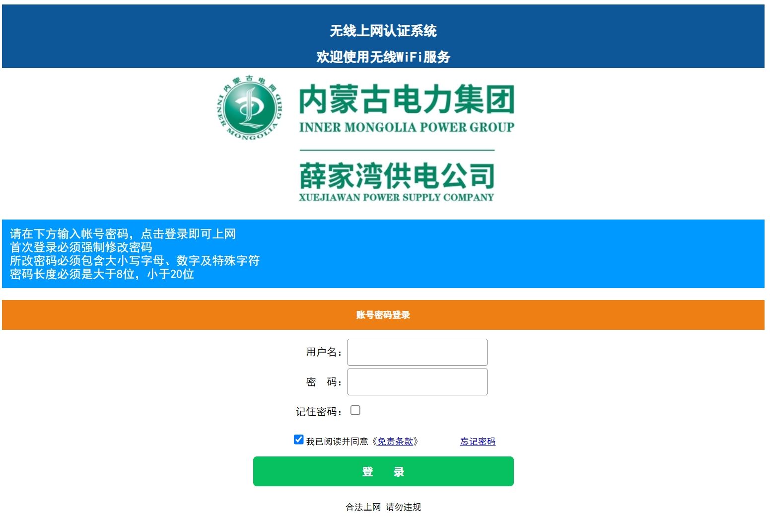 内蒙古薛家湾电力公司采用我司认证系统为员工提供认证上网服务